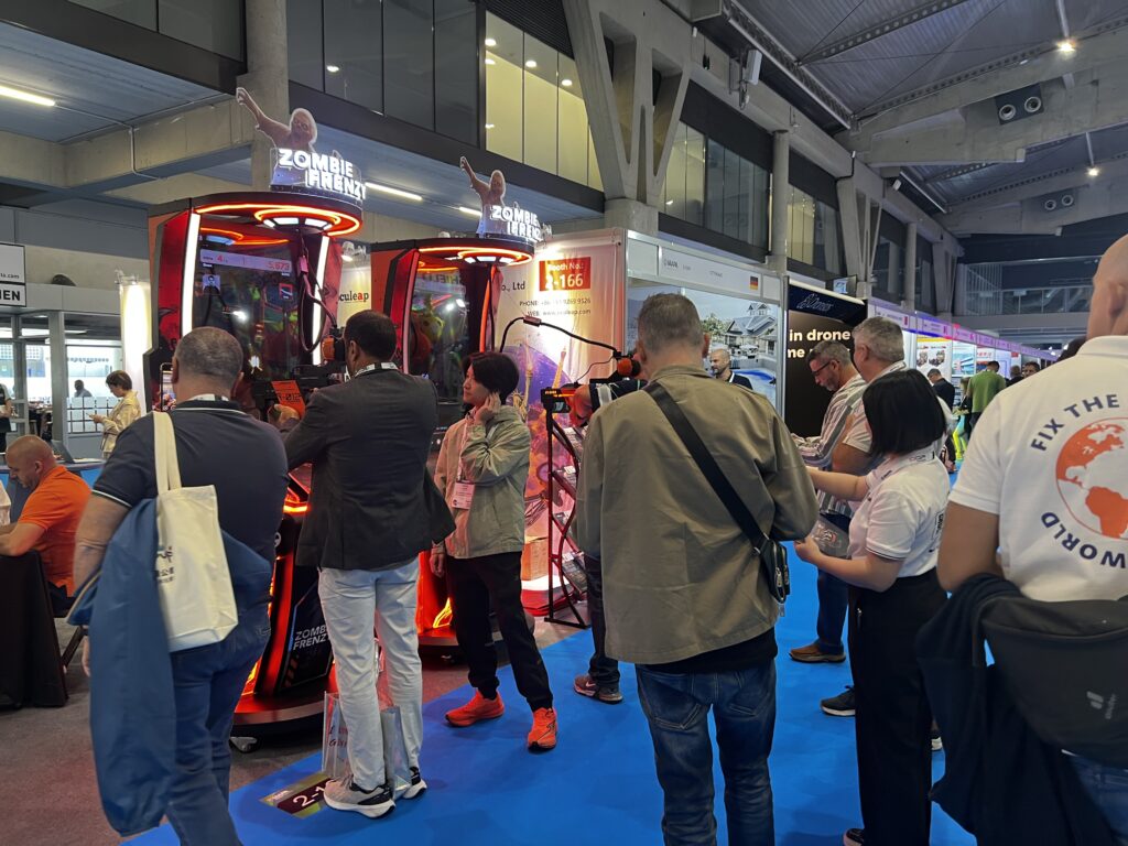 As an upgraded VR shooting simulator, Zombie Frenzy Solo became one of the most talked-about products during the exhibition, attracting strong interest from European distributors, arcade operators, and family entertainment center (FEC) investors.